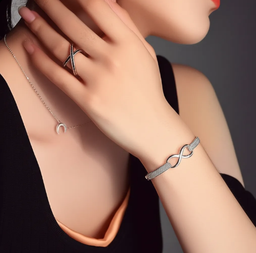 Bracelet: An infinity symbol bracelet embodies endless love and connection, available in multiple sizes for a comfortable, elegant fit.